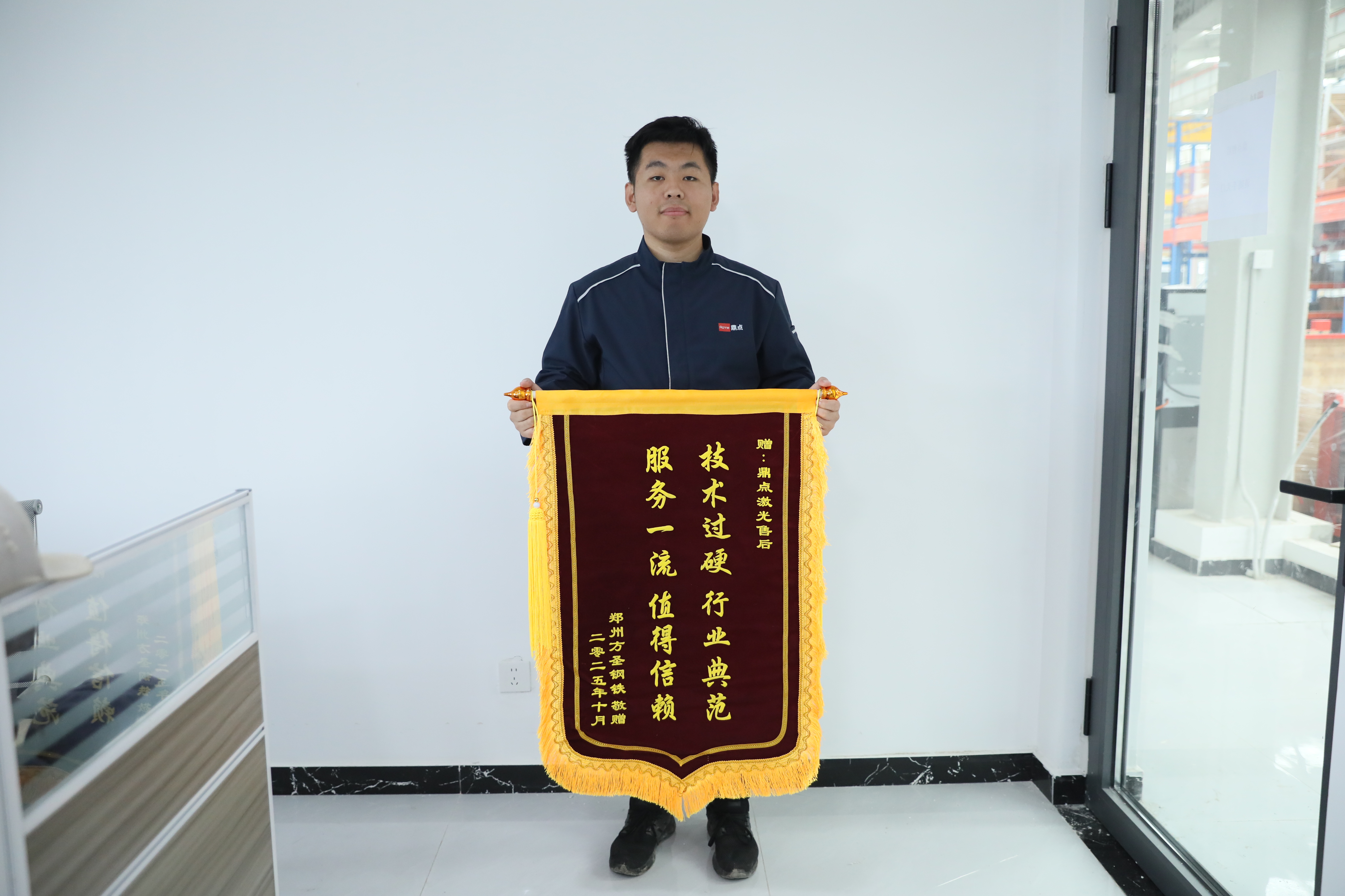 近日,鼎点激光收到了一份特别的“礼物”——一面来自郑州方圣钢铁赠送的锦旗。锦旗上“技术过硬行业典范,服务一流值得信赖”十六个字,承载着客户的深厚谢意与高度认可。2024年方圣钢铁首次采购鼎点激光12036TKA,2025年再次回购公司产品6012VFA。合作期间,鼎点激光专业技术团队始终提供可靠的技术支持,及时响应服务需求,并协助方圣钢铁对旧设备进行功率升级服务,切实践行“客户至上”的服务理念。在方圣钢铁车间配备多...